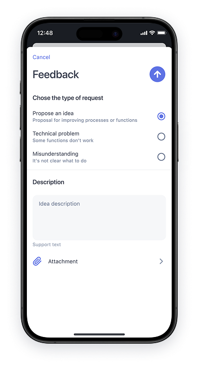 Named feedback channelsEnable employees to submit ideas directly through the app or web interface — no forms, no spreadsheets, just quick input with full accountability.