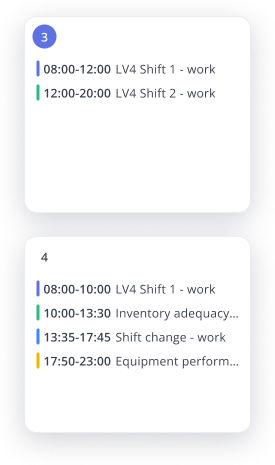 Create, edit, and publish shift schedules in minutes. Adjust workloads based on skills, availability, and operational demand — all from a single interface.