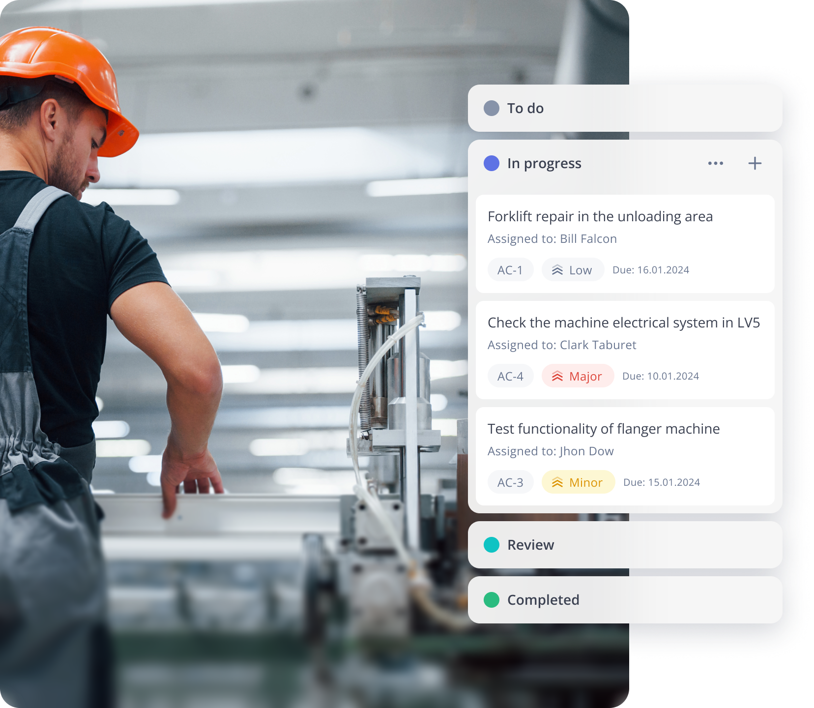 Safety & compliance controlTurn audit findings, incidents, or safety reports into actionable tasks with deadlines and responsible owners.