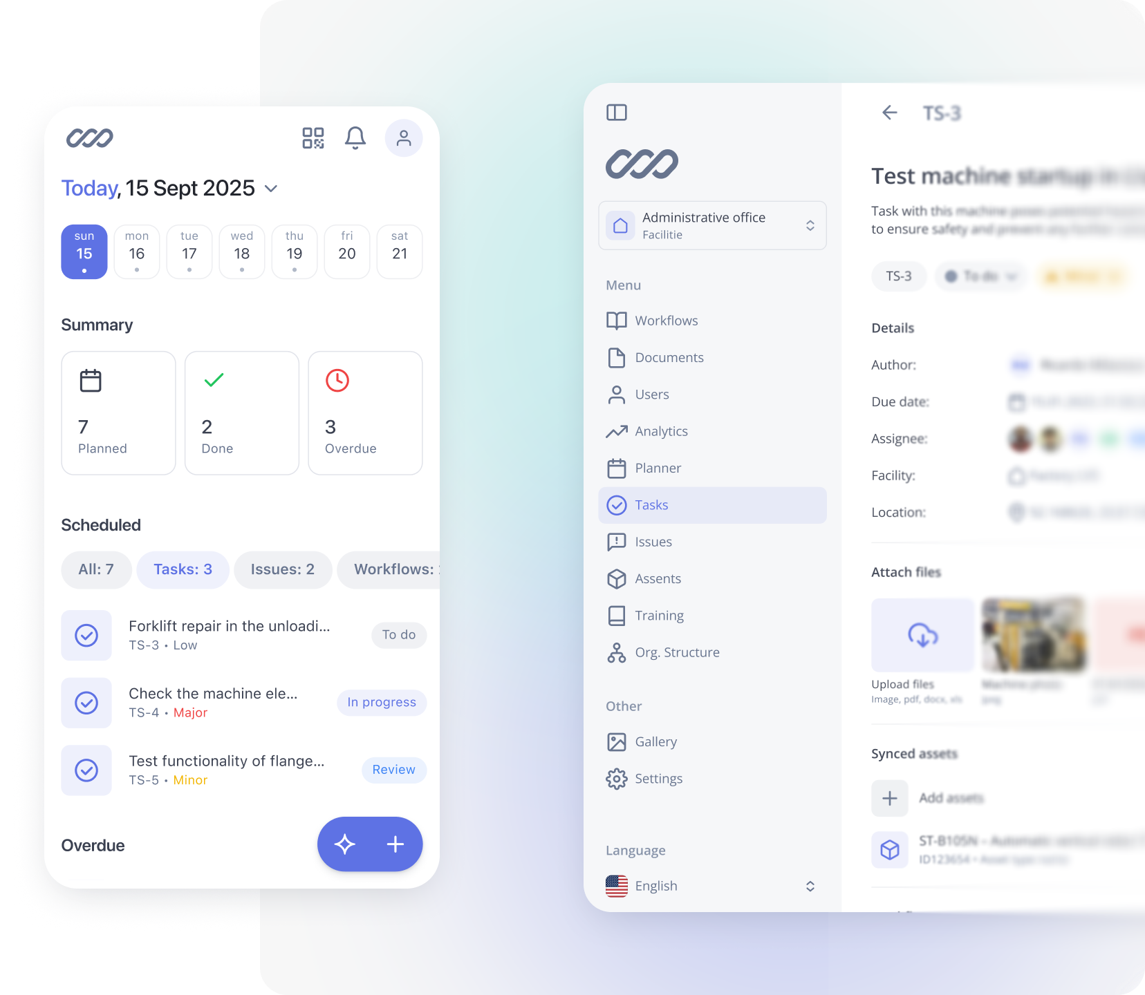 One ecosystem, endless clarityTasks seamlessly connect with Assets, Issues, and Checklists, linking people, equipment, and processes in a single digital environment.