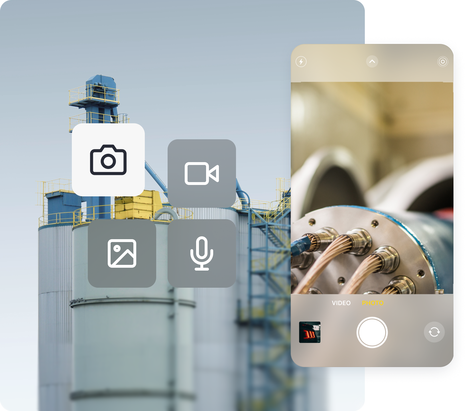 Multimedia evidence at handEasily attach photos (defects, equipment state), videos (process steps), voice notes, or numbers — directly inside the checklist.