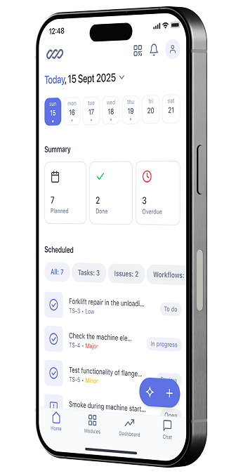 Guided step-by-step checksEmployees complete inspections in real time, marking each step with checkboxes, values, comments, signatures, and evidence.